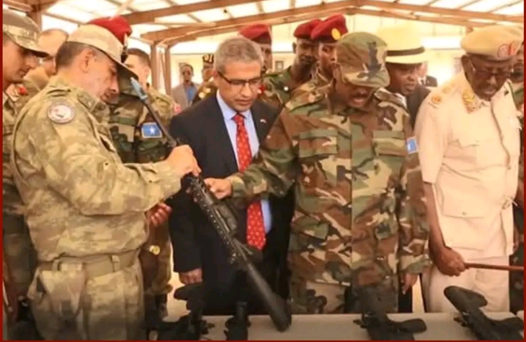 এরদোগান সোমালিয়ায় মুসলিম যোদ্ধাদের বিরুদ্ধে সরাসরি সৈন্য পাঠিয়ে এবং সামরিক ঘাঁটি করে ইসলামি শাসন কায়েমের বিপক্ষের সেনাবাহিনীর বাহিনীকে সামরিক,অর্থনৈতিক সব ধরণের সহায়তা করছে। সোমালি সেনাবাহিনিকে সামরিক প্রশিক্ষণ দিচ্ছে তুরষ্ক। এজন্য বিরাট সামরিক ঘাঁটি স্থাপন করেছে।অর্থাৎ তুরষ্ক খুব স্পষ্টভাবে জানিয়েছে, তারা সোমালিয়ায় বিপ্ললি স্বাধীনতাকামী সংগঠন আস-শাবাব প্রতিষ্ঠিত শরীয়াহ’র বিরুদ্ধে আমেরিকা, জাতিসংঘ এবং আফ্রিকান ইউনিয়নের সরাসরি সমর্থিত সরকারকে সামরিক প্রশিক্ষণ দেওয়ার জন্য এই বিরাট সামরিক ঘাঁটিটি স্থাপন করেছে। সামরিক প্রশিক্ষণসহ তুরষ্ক সার্বিকভাবে এই সোমালি সরকারকে স্বাধীনতাকামীদের বিরুদ্ধে প্রত্যক্ষ সহায়তা করে যাচ্ছে।এরদোগানের সরকার ও তুর্কী সেনাবাহিনী সোমালিয়ার সেনাবাহিনীকে অ-স্ত্র প্রদান করেছে। এই অস্ত্র প্রদান অনুষ্ঠানে সোমালিয়ার প্রেসিডেন্ট, তুরষ্কের রাষ্ট্রদূত এবং তুরষ্কের প্রতিরক্ষা মন্ত্রণালয়ের কর্মকর্তারা উপস্থিত ছিল।ছবিতে – সোমালিয়ার প্রেসিডেন্ট, তুরষ্কের রাষ্ট্রদূত এবং তুরষ্কের প্রতিরক্ষা মন্ত্রণালয়ের কর্মকর্তারা।
