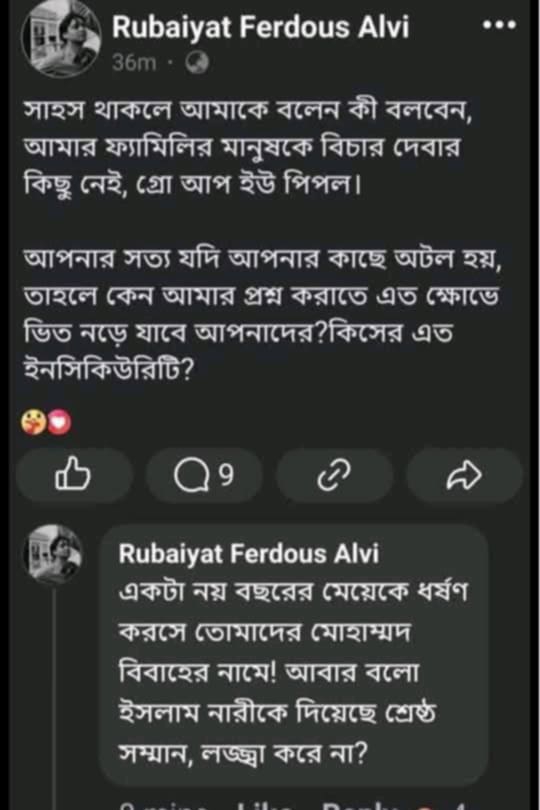বিশ্লেষণ:বিশ্ববিদ্যালয় পর্যায়ের একজন শিক্ষার্থীর এমন কটূক্তি শুধু ব্যক্তিগত চিন্তার বহিঃপ্রকাশ নয়, বরং এটি একটি বৃহৎ সামাজিক ও আদর্শিক সঙ্কটের ইঙ্গিত দেয়। এই ঘটনায় ইসলামপন্থী ছাত্র ও সাধারণ শিক্ষার্থীদের মাঝে ক্ষোভ ও উত্তেজনা বেড়েই চলেছে।
