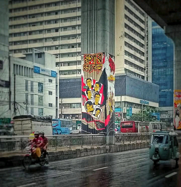 ঢাকার কারওয়ান বাজার থেকে ফার্মগেটের পথে মেট্রো রেলের ৪৬৪ নম্বর পিলারে সম্প্রতি একটি বিতর্কিত ম্যুরাল আঁকা হয়েছে, যেখানে ২০১৩ সালের শাহবাগ আন্দোলনের স্মৃতি পুনরুজ্জীবিত করার প্রয়াস দেখা যাচ্ছে। কিন্তু এই ম্যুরাল নতুন করে বহু ইসলামপ্রিয় নাগরিকের মনে ক্ষোভের আগুন জ্বেলে দিয়েছে।