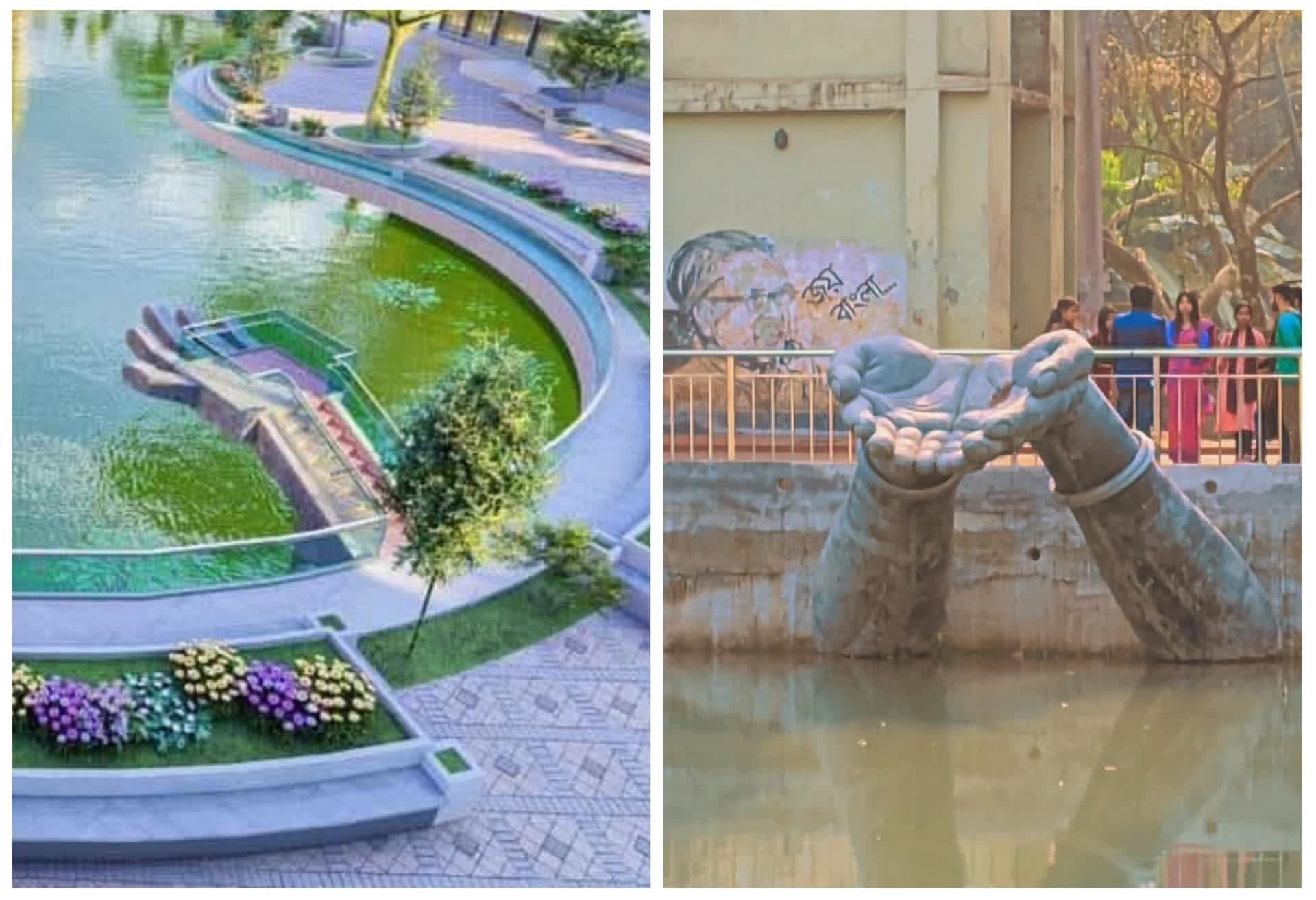 এ বিষয়ে বর্তমান উপাচার্য অধ্যাপক ড. মো. জাহাঙ্গীর আলম বলেন, “৫ আগস্টের রাজনৈতিক পটপরিবর্তনের পর শিক্ষার্থীদের যে কয়েকটি দাবির মধ্যে একটি ছিল ভাস্কর্যটি ভেঙে ফেলা, তখন আমরা তা বিবেচনায় নেইনি। তবে এখন জলাধারটির সৌন্দর্যবৃদ্ধির লক্ষ্যে ভাস্কর্যটি তার মূল নকশায় ফিরিয়ে আনা হচ্ছে।